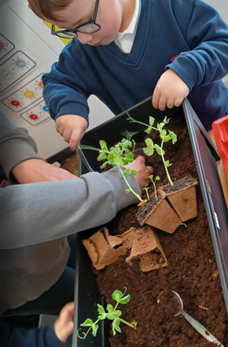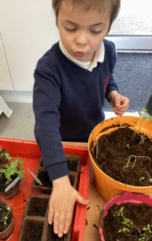 Science: How our seedlings are progressing! Each day, the children are checking and caring for their growing plants.
