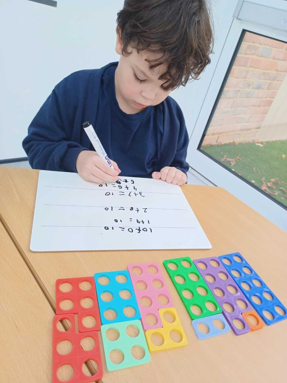 In maths both Year 1 and 2 children are working on their number bonds to 5 and 10 using different practical equipment for support and learning to write their numbers correctly to 10.