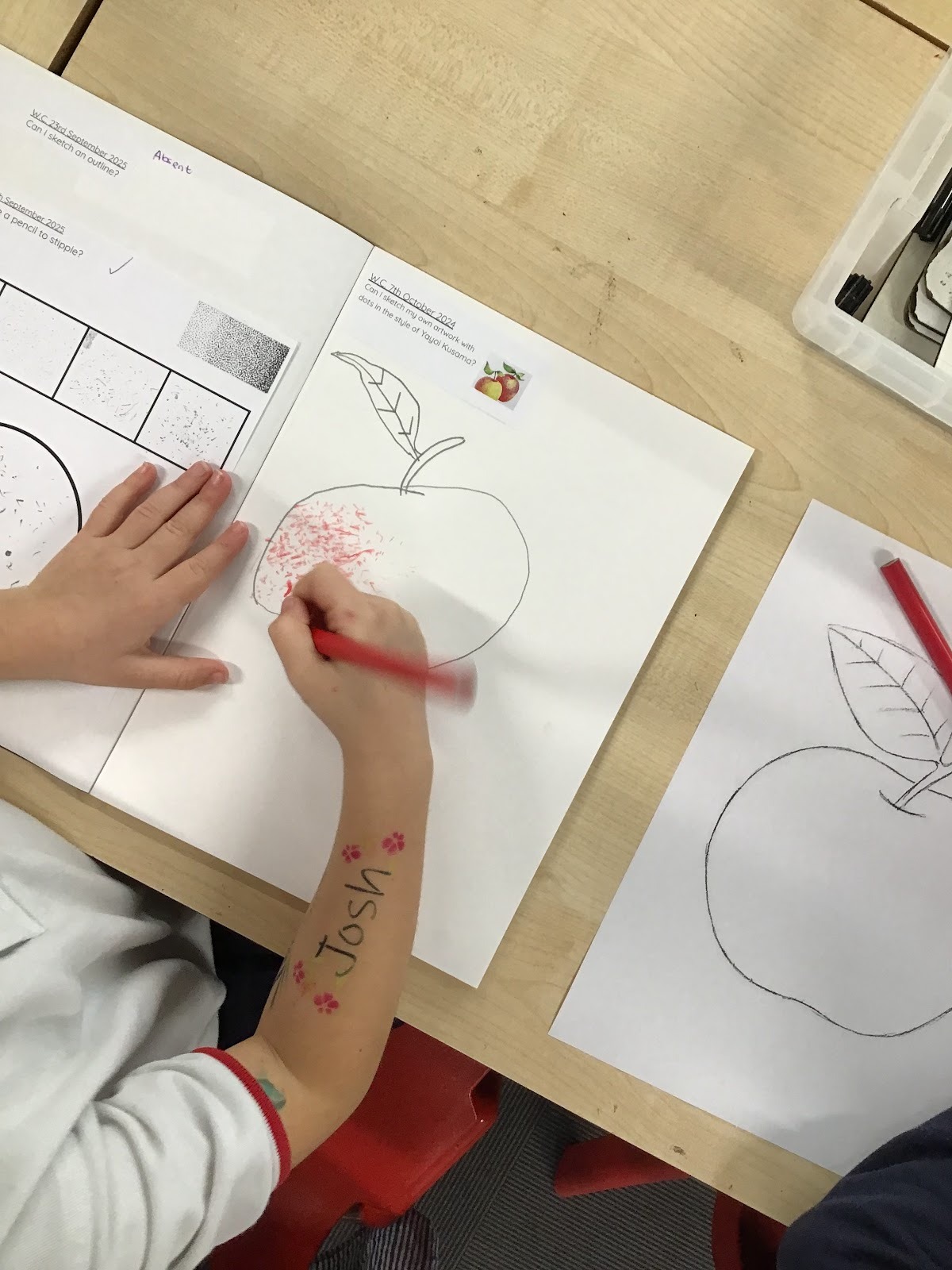 In science, we began learning about animals and how they behave throughout the seasons. We explored the five main animal groups and named examples from each. The children also became artists this week, taking inspiration from Yayoi Kusama. We practised sketching an apple and used stippling to make our artwork look more realistic.