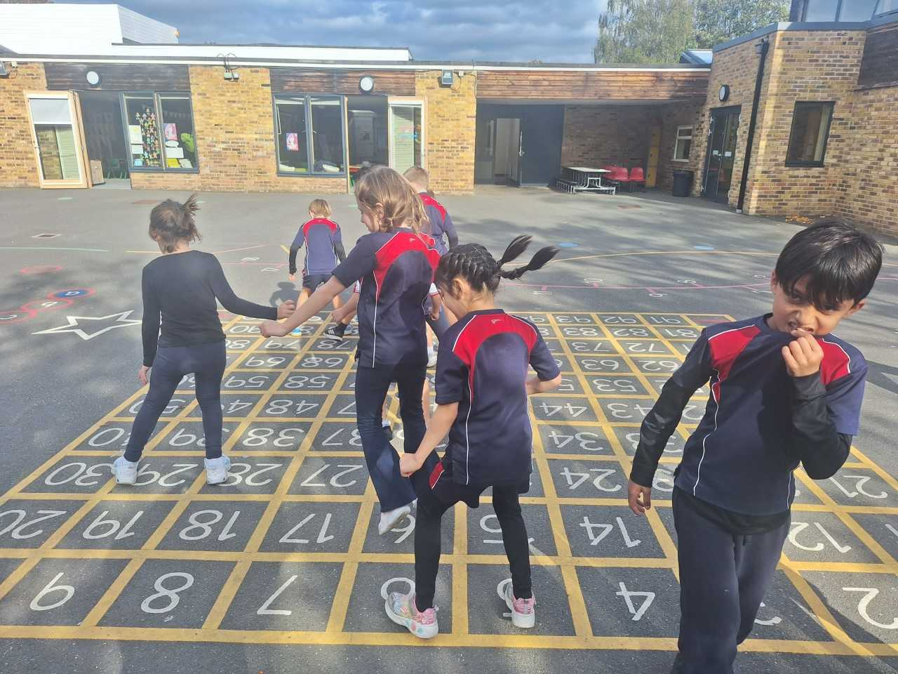 The children also worked on patterns and rhythm in PE with a ‘jump to the beat’ challenge. How fantastic to see this activity being practised outside during playtime!