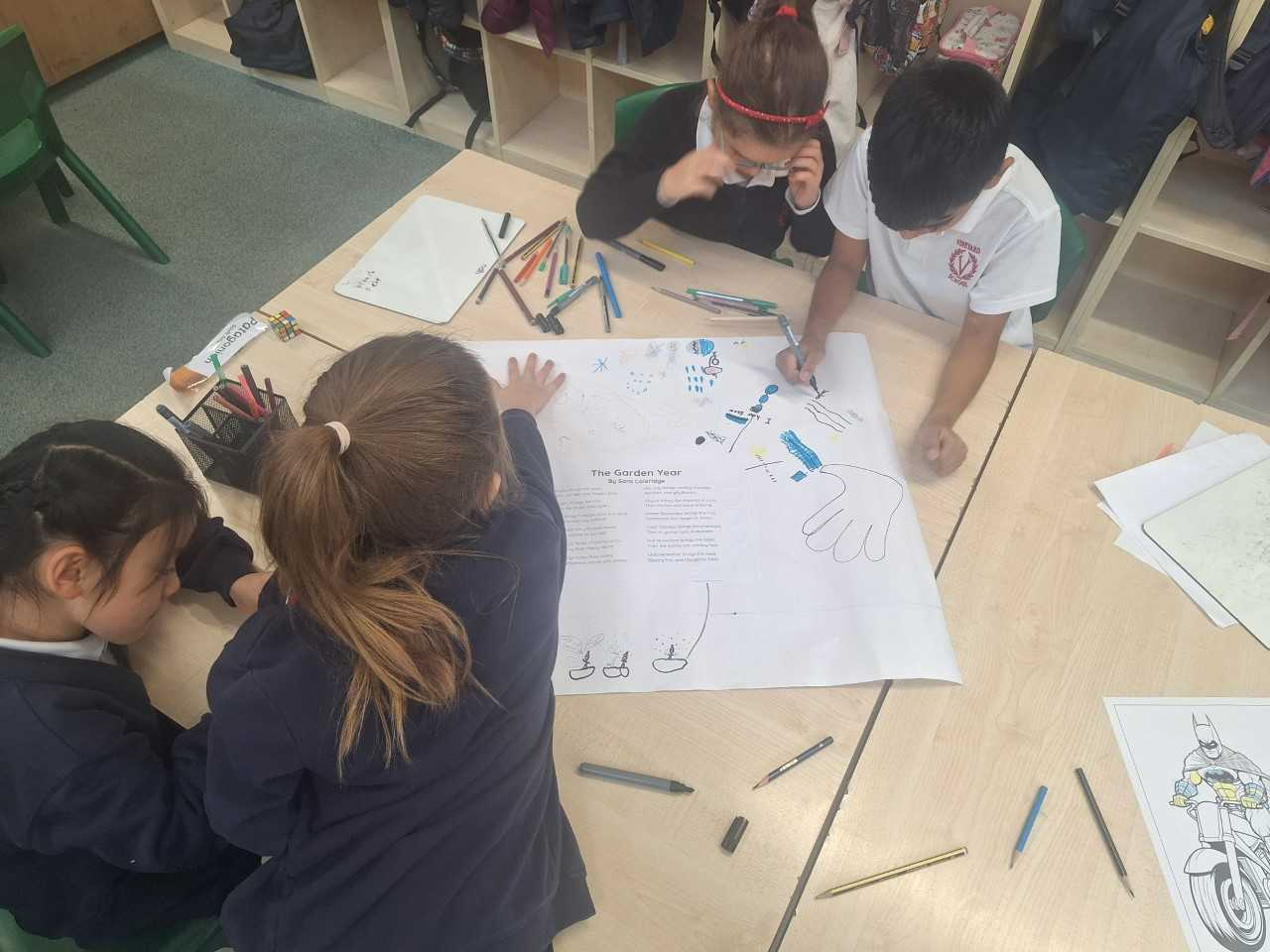 We’ve had another productive and interesting couple of weeks moving away from writing a non-chronological report about sloths to the magical world of poetry. It has been delightful to see everyone’s engagement and interests inside and outside of school about arguably the ‘laziest mammals’. This led us all to discover so many new things and was an excellent way to unpick how we could present our knowledge effectively including subheadings and paragraphs. Our new stimulus has ignited imagination and creativity with the poem The Garden Year and we have been delving into what a poem is and how it can make us feel.