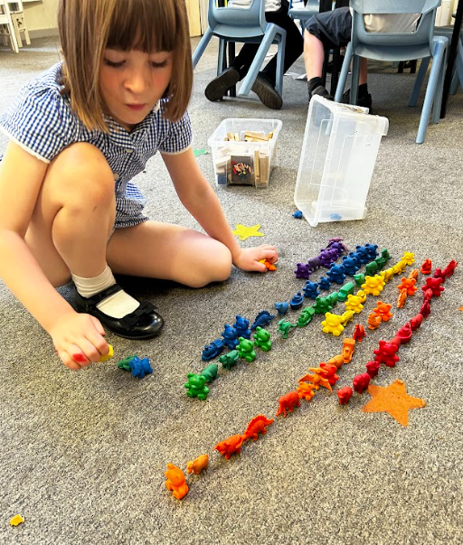 During free learning, we have been enjoying the outside theatre and looking at dinosaur shadows and tracing around them. We have been keeping cool by scooping letters and sounds from the water and looking after our plants by making sure they have plenty of water.