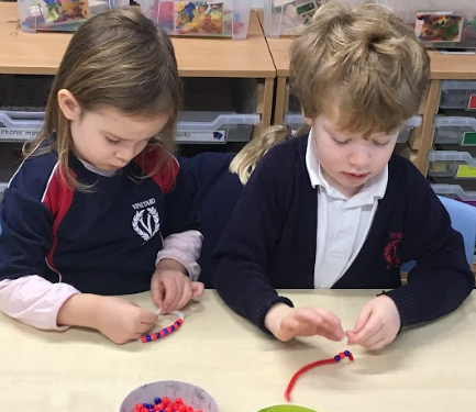 In Maths children have been learning all about 2D shapes and patterns. We practiced naming shapes, talked about their properties, sorted them and looked at shapes in our environment. The children also thought about patterns, including repeating patterns, helping them to recognise sequences and predict what comes next.